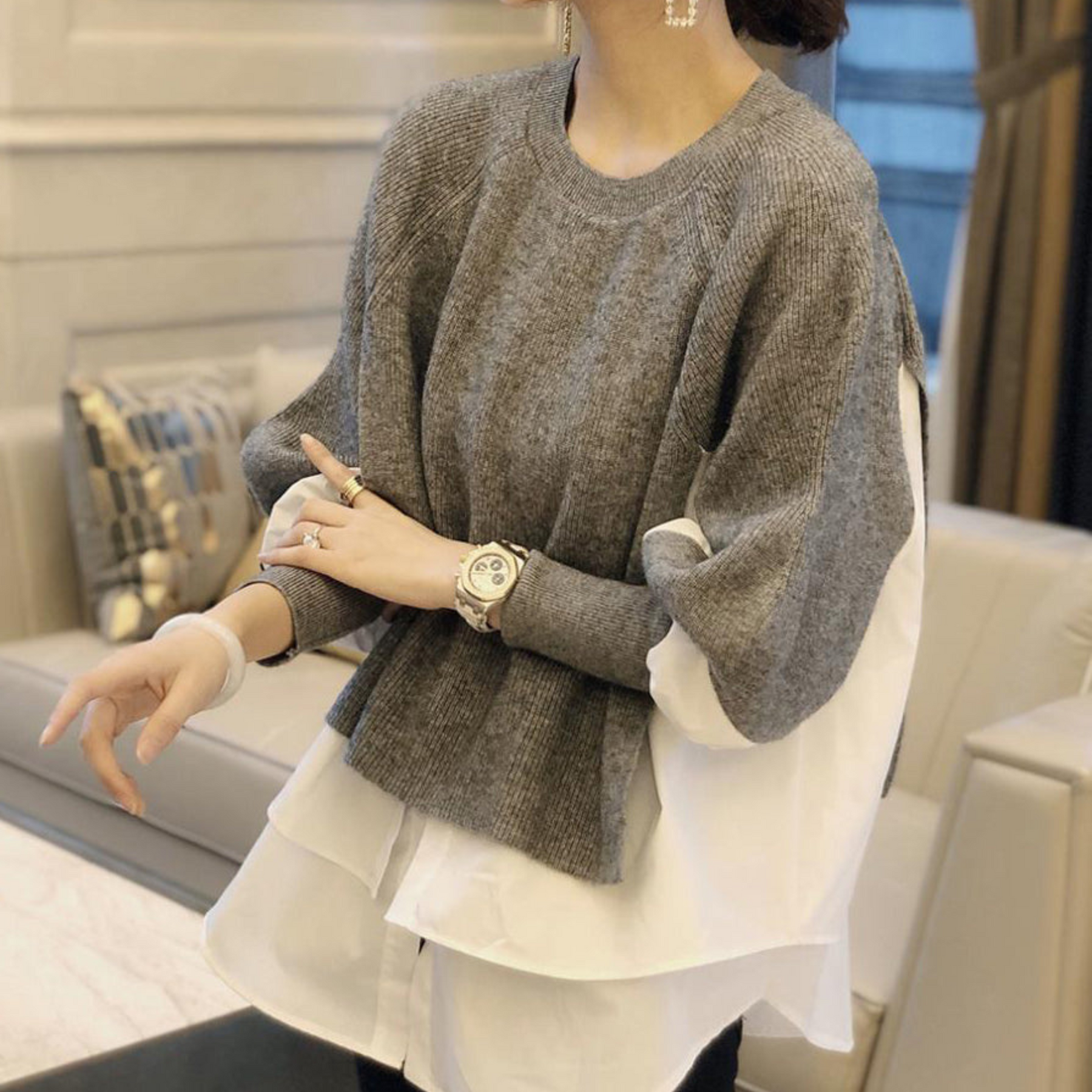 Dieser oversized Pullover LINA vereint ultimativen Komfort und modernen Stil. Mit seinen puffigen Ärmeln und dem lässigen Schnitt ist er der perfekte Begleiter für ein schickes und gemütliches Outfit im Alltag. Tragen Sie ihn mit einer Jeans oder einem Rock und lassen Sie sich von seinem einzigartigen Design verführen, das Ihnen sowohl Komfort als auch Eleganz bietet.