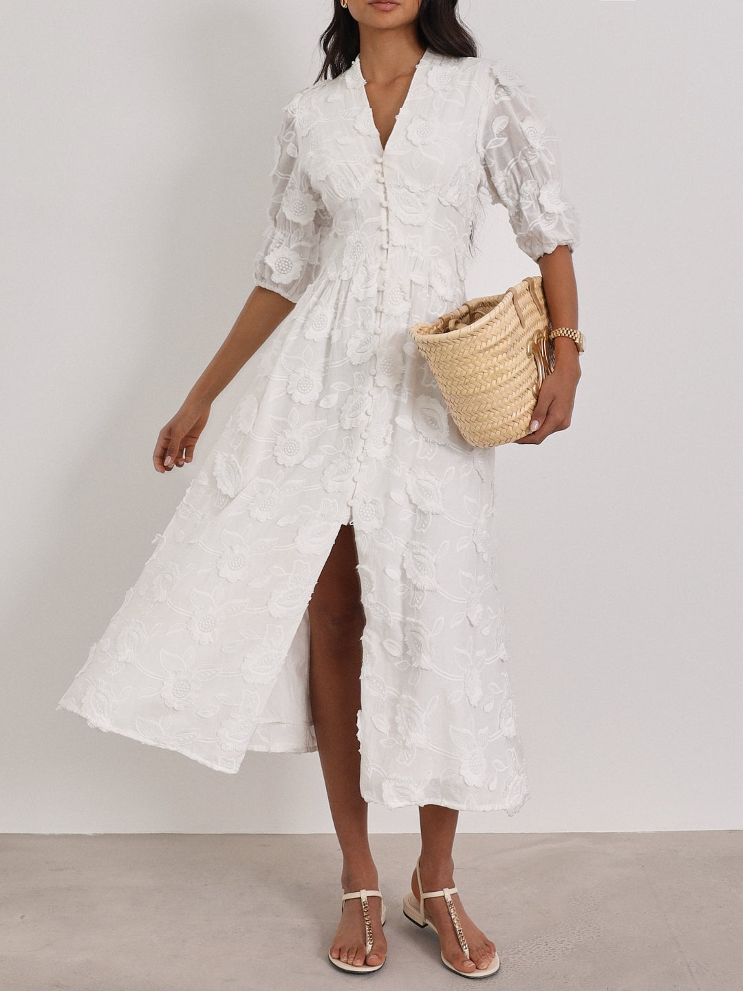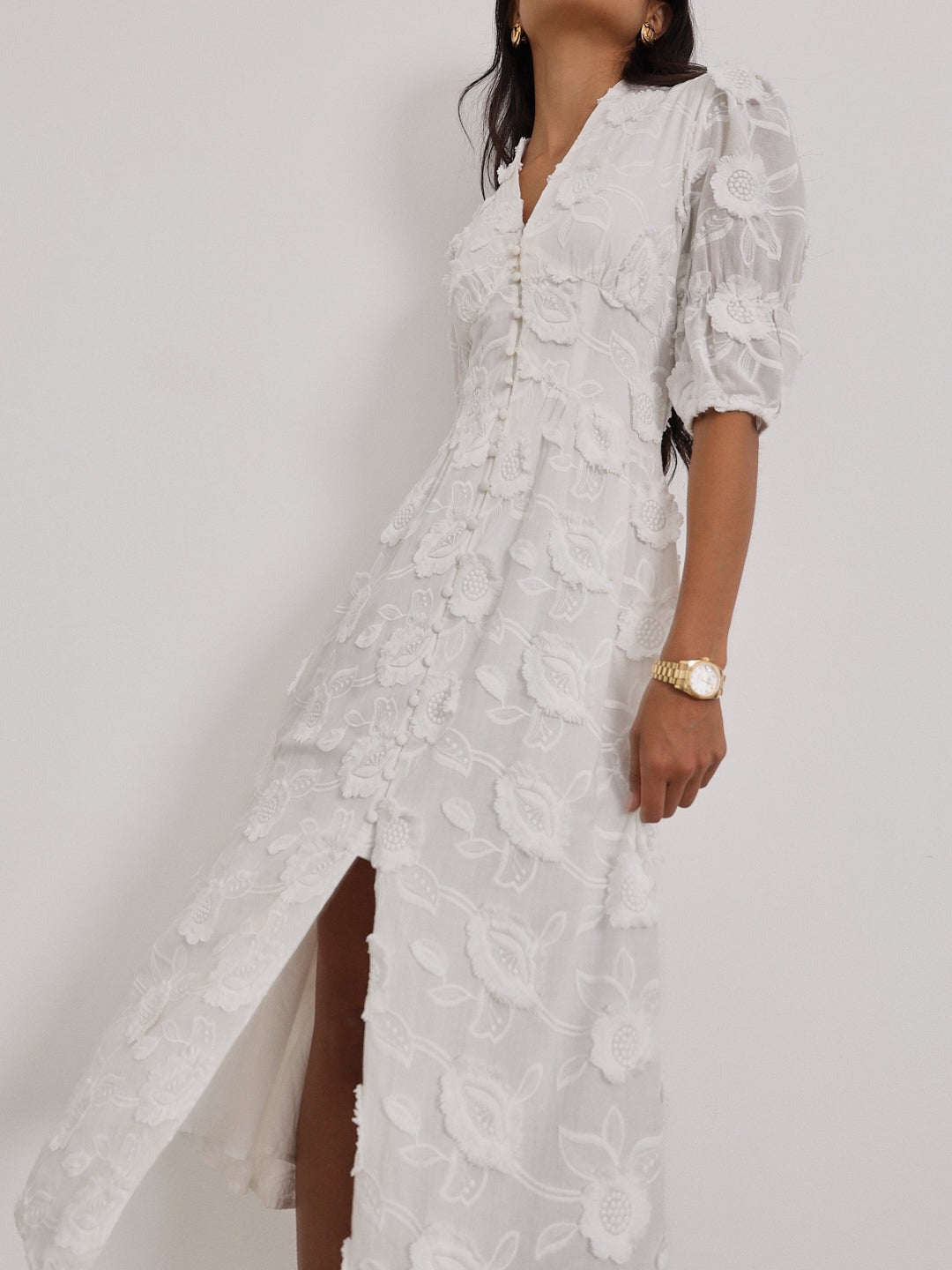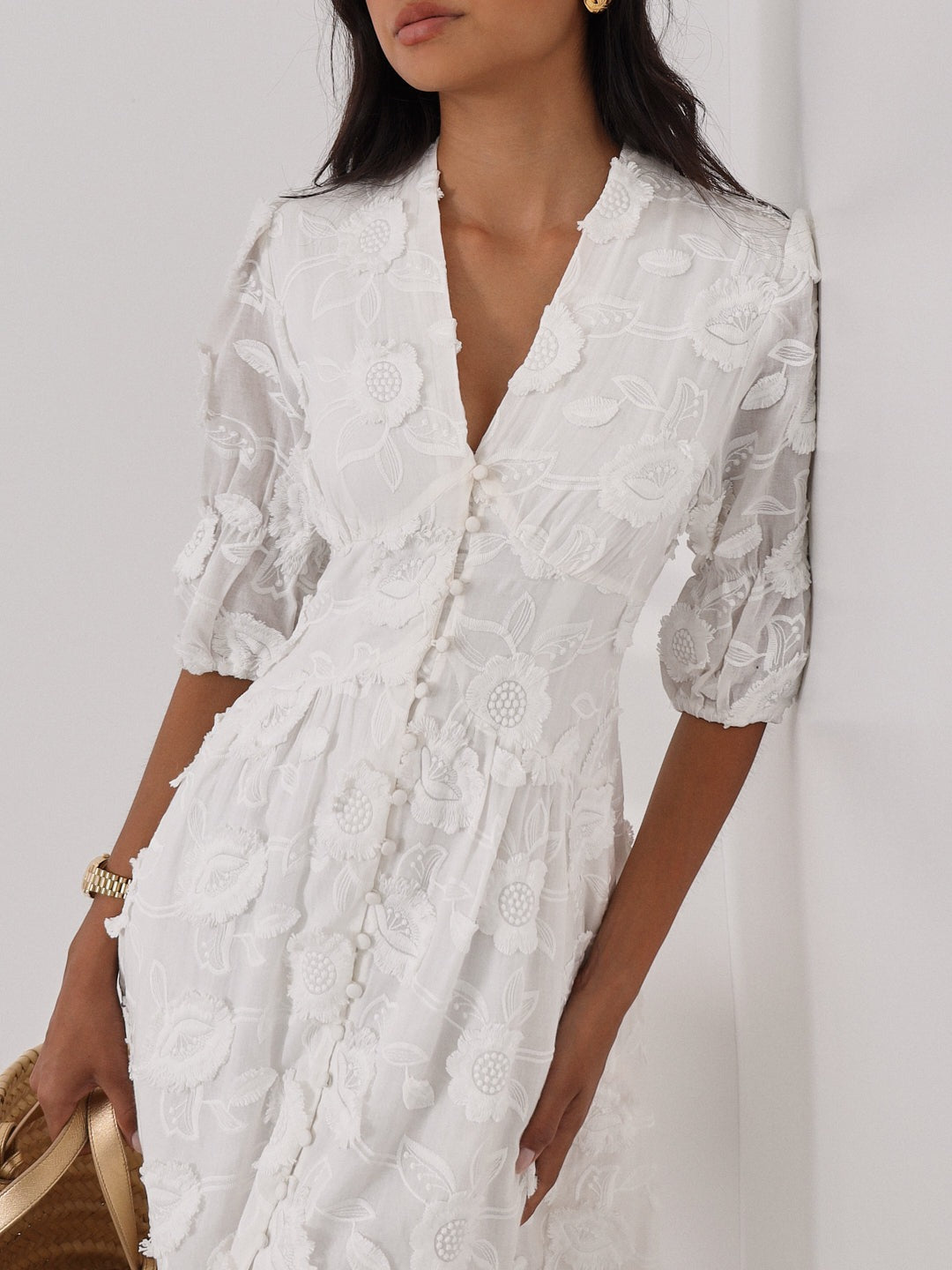 Violetta” wurde entworfen, um dich in deinen bedeutendsten Momenten zu begleiten — sei es eine Hochzeit, ein Traumurlaub oder ein romantisches Abendessen. Ihre definierte Silhouette, kombiniert mit zarten Blumenstickereien, schafft einen mühelosen Wow-Effekt. Du wirst dich elegant, frei und absolut selbstbewusst fühlen. Dieses Kleid ist nicht nur ein Kleidungsstück, es ist eine Emotion, die du tragen kannst.