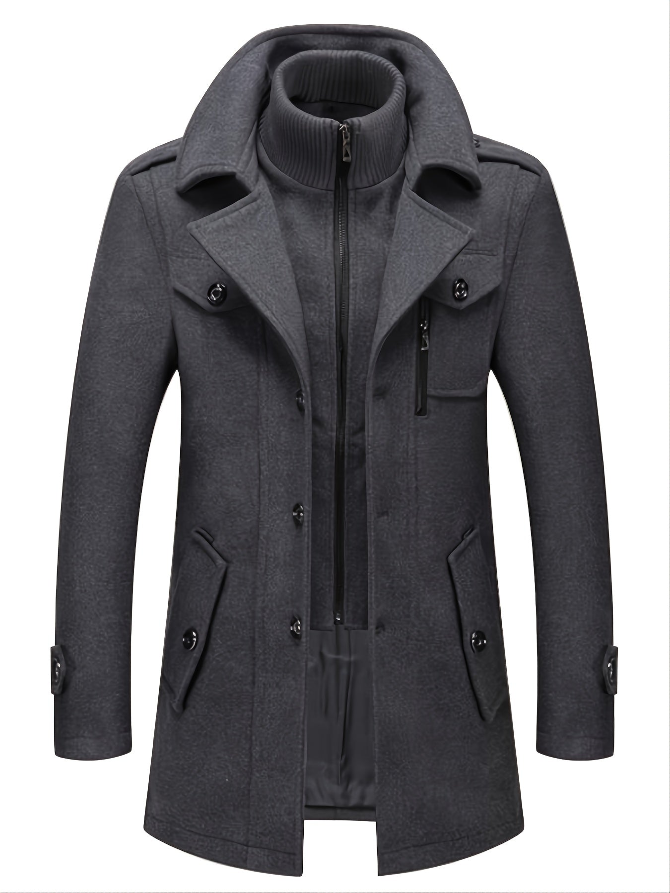 Hüllen Sie sich in die zeitlose Eleganz und den unvergleichlichen Komfort des Herrenmantels Wade. Mit Liebe zum Detail gefertigt, vereint dieser Mantel mühelos Mode und Funktionalität. Sein Stoff sorgt an kalten Tagen für Wärme, während das elegante Design Ihrem Outfit einen Hauch von Raffinesse verleiht. Erleben Sie die Freude, einen Mantel zu tragen, der Sie nicht nur warm hält, sondern auch Ihren makellosen Modegeschmack zur Schau stellt. Erhöhen Sie Ihren Stil und strahlen Sie Selbstbewusstsein aus, wo immer Sie mit dem Herrenmantel Wade hingehen.